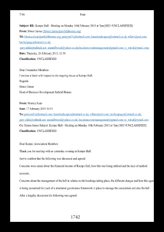 Cc: Simon James Subject: Kempe Hall - Meeting on Monday 16th February 2015 at 7pm [SEC=UNCLASSIFIED]