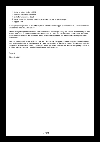 4. Email dates Tue 10/02/2015 13:06 which i have not had a reply to as yet.