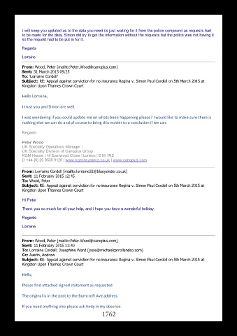 Subject: RE: Appeal against conviction for no insurance Regina v. Simon Paul Cordell on 5th March 2015 at