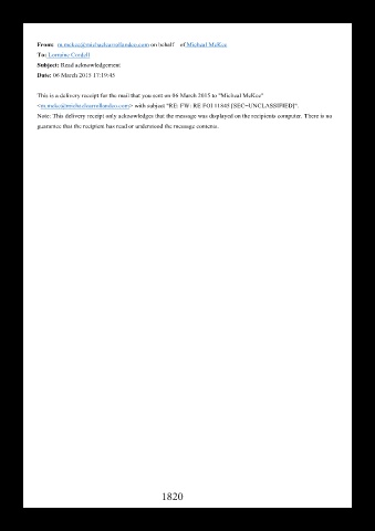 This is a delivery receipt for the mail that you sent on 06 March 2015 to "Micheal McKee"