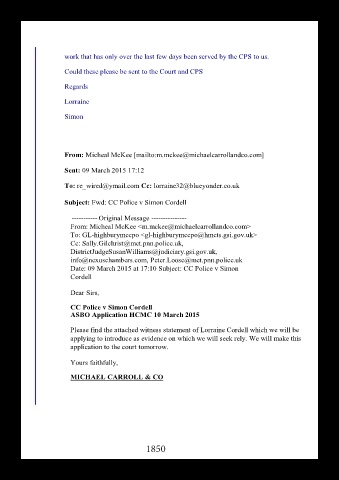 Subject: Fwd: CC Police v Simon Cordell