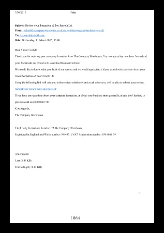 Subject: Review your Formation of Too Smooth Ltd