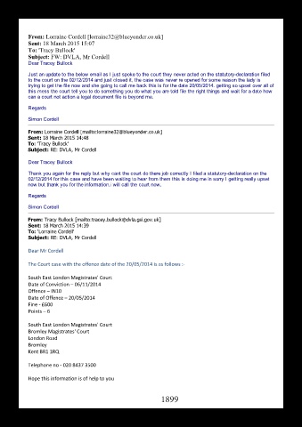 Just an update to the below email as I just spoke to the court they never acted on the statutorydeclaration filed