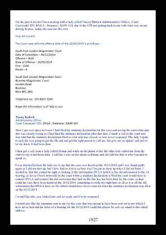Casework1 D9 | DVLA | Swansea | SA99 1AY due to the CPS not getting back to me with what was on my