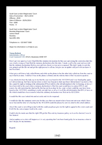 And an update as to what will happen as it is very upsetting that I am been found guilty for no insurance when in