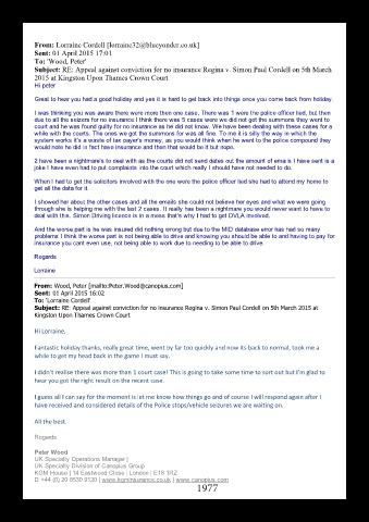 Subject: RE: Appeal against conviction for no insurance Regina v. Simon Paul Cordell on 5th March 2015 at