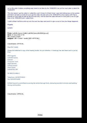 member of court staff he said he did not know why I did not have the order and sent it in the post to me so I got