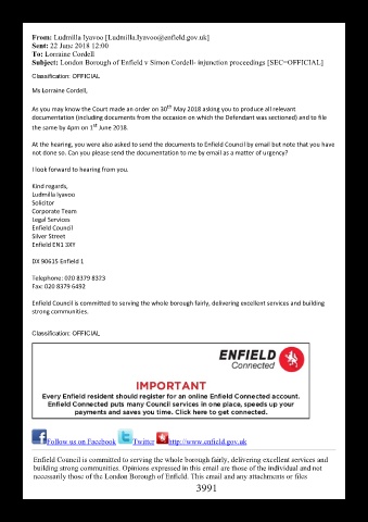 At the hearing, you were also asked to send the documents to Enfield Council by email but note that you have
