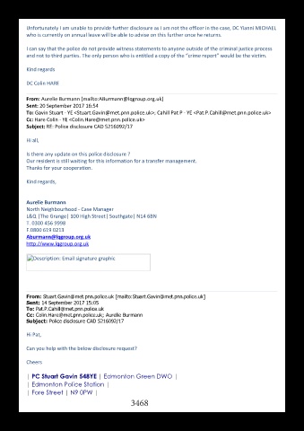 Unfortunately I am unable to provide further disclosure as I am not the officer in the case, DC Yianni MICHAEL