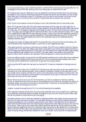 to speak to PC G. As when the Judges came back in and said my son had won his appeal and that he