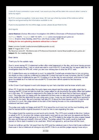 to speak to PC G. As when the Judges came back in and said my son had won his appeal and that he
