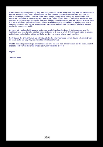 What the council are doing is wrong; they are making my son's life hell living there, they have not come out once