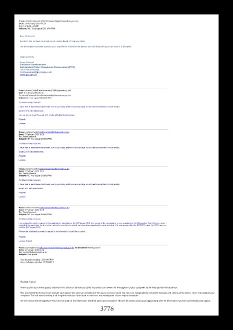 I am writing this email in regards to the application I submitted on the 20 February 2018 for a review of the investigation of your complaint by the Metropolitan Police Service, when I