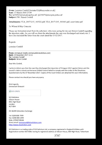 I write to inform you that the court has discharged the injunction of 9 August 2017 against Simon and the