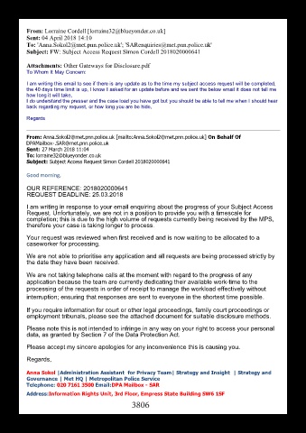 To: 'Anna.Sokol2@met.pnn.police.uk'; 'SARenquiries@met.pnn.police.uk'