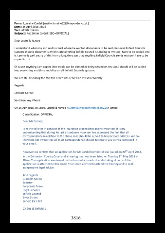 I understand when my son said in court where he wanted documents to be sent, but over Enfield Councils