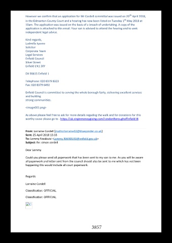 However we confirm that an application for Mr Cordell committal was issued on 20 April 2018,