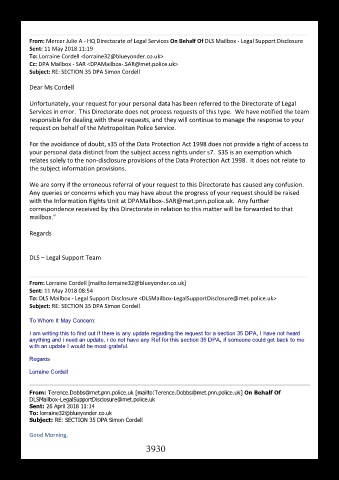 Cc: DPA Mailbox ‐ SAR <DPAMailbox‐.SAR@met.police.uk>