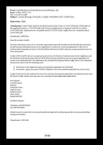 Subject: London Borough of Enfield v Cordell E00ED049 [SEC=OFFICIAL]