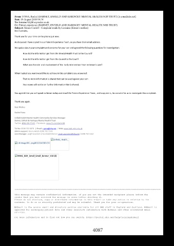 Cc: Patient.experience (BARNET, ENFIELD AND HARINGEY MENTAL HEALTH NHS TRUST)