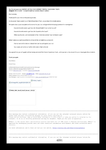You agreed that you will speak to Simon today and email the Patient Experience Team , and copy me in, his consent for us to investigate this complaint.