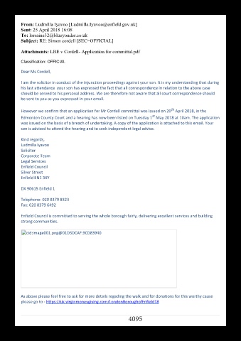 However we confirm that an application for Mr Cordell committal was issued on 20 April 2018, in the