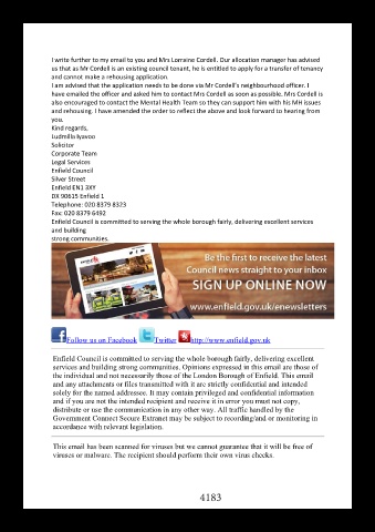 I write further to my email to you and Mrs Lorraine Cordell. Our allocation manager has advised