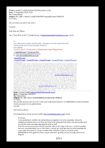 Subject: Re: LBE v Simon CordellE00ED049 amended Order 09082018