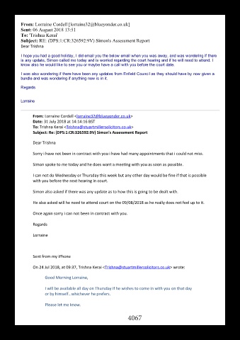 He also asked will he need to attend court on the 09/08/2018 as he really does not feel up to it.