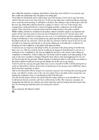 I was taken to Southwark police station they were still trying to force me to sign the ticket