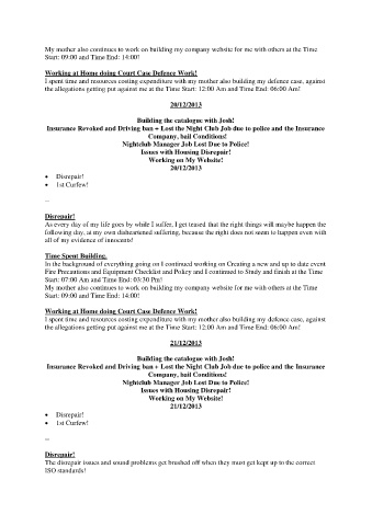 I spent time and resources costing expenditure with my mother also building my defence case, against