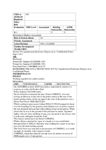 Strictly NO unauthorised disclosure Dispose of as ’Confidential Waste’