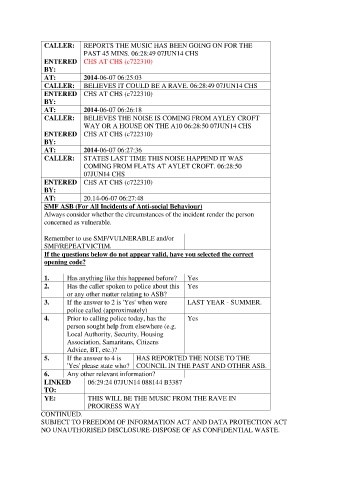2. Has the caller spoken to police about this Yes