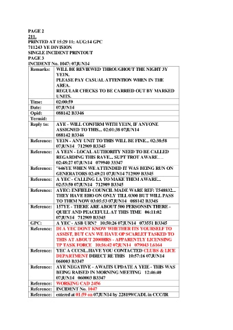 Remarks: WILL BE REVIEWED THROUGHOUT THE NIGHT 3Y