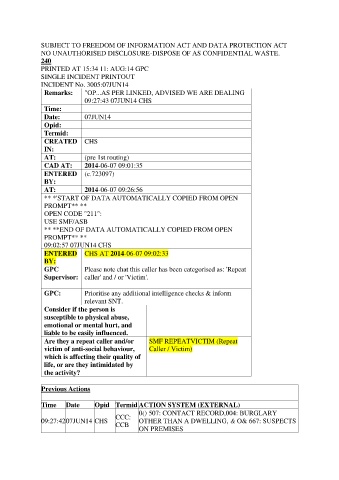 GPC Please note chat this caller has been categorised as: 'Repeat