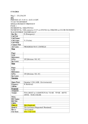 INCIDENT No. 5206 entered at 13:57 on 07JUN14 by CHS/CHS in CCC/IR INCIDENT