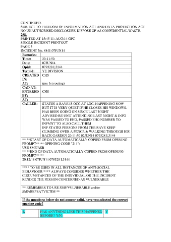 SINGLE INCIDENT PRINTOUT
