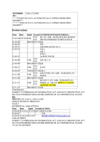 CCC: 0() 215: ASB - NUISANCE,202: ROWDY