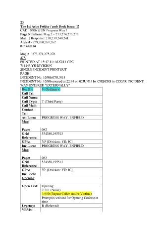 INCIDENT No. 10506 entered at 22:44 on 07JUN14 by CHS/CHS in CCC/IR INCIDENT