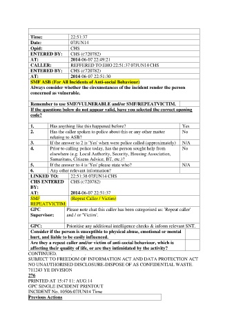 CALLER: REFFERED TO EHO 22:51:37 07JUN14 CHS