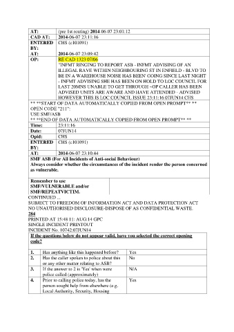 2. Has the caller spoken to police about this No