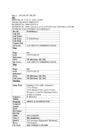 INCIDENT No. 10967 entered at 23:25 on 07JUN14 by CHS/CHS in CCC/IR