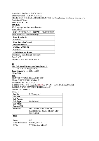 INCIDENT No. 1012 entered at 01:53 on 07JUN14 by CHS/CHS in CCC/IR