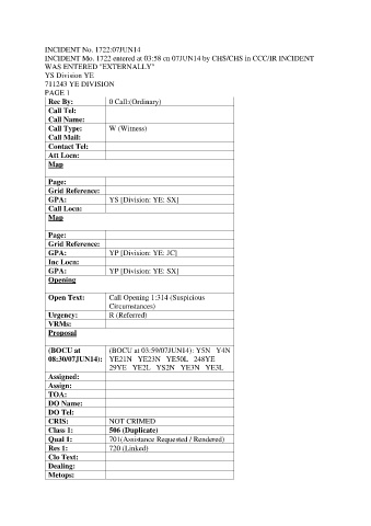 INCIDENT No. 1722:07JUN14