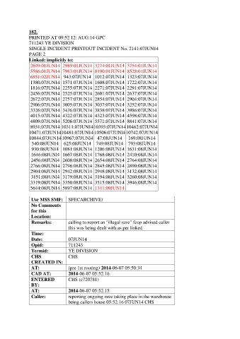 SINGLE INCIDENT PRINTOUT INCIDENT No. 2141:07JUN14