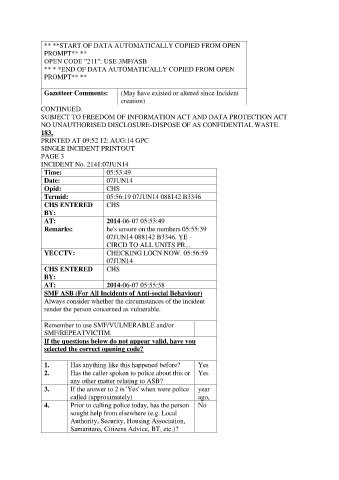 SMF ASB (For All Incidents of Anti-social Behaviour)