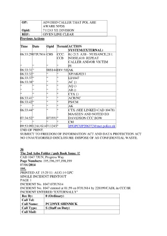 INCIDENT No. 1047 entered at 01:59 on 07JUN14 by 228199/CADL in CCC/IR