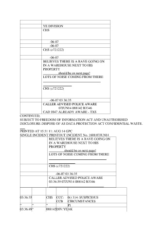 SINGLE INCIDENT PRINTOUT INCIDENT No. 1608:07JUN14