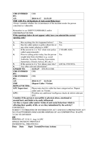 Are they a repeat caller and/or victim of anti-social behaviour which is
