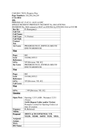 INCIDENT No. 8841 entered at 20:07 on 07JUN14 by 079328/L3144 in CCC/IR